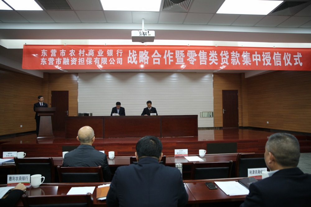 2018年1月18日上午,市融资担保公司与东营市农村商业银行战略合作签约仪式在东营市农村商业银行办公大楼举行。市财金投资集团公司党委委员、副总经理胥学忠和山东省农村信用社联合社东营办事处党委副书记、副主任张德兵出席签约仪式并致辞,市融资担保有限公司董事长明欣与张德兵分别代表双方签订了战略合作协议,共同致力于为东营市“三农”和小微企业提供更好的融资服务。