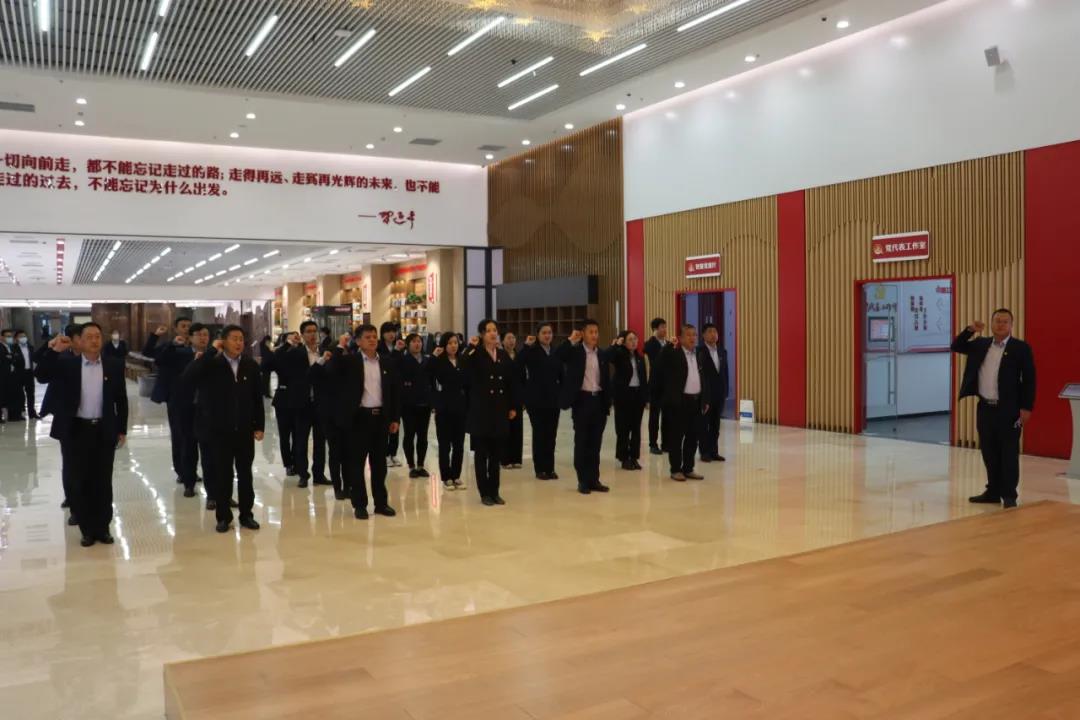 市财金集团组织党员干部到市党性教育实践基地参观学习,通过参观中共百年党史展、东营地方党史展、东营党建工作展,重温入党誓词,观看《没有共产党就没有新中国》专题片,回顾中国共产党百年奋斗的光辉历程,感受东营地区波澜壮阔的革命史、艰苦卓绝的创业史和勇于拼搏的奋斗史,激励党员干部从党的优良传统中汲取力量,强化初心使命,以奋发有为的精神和开拓进取的干劲,为集团公司各项事业创新发展贡献力量。