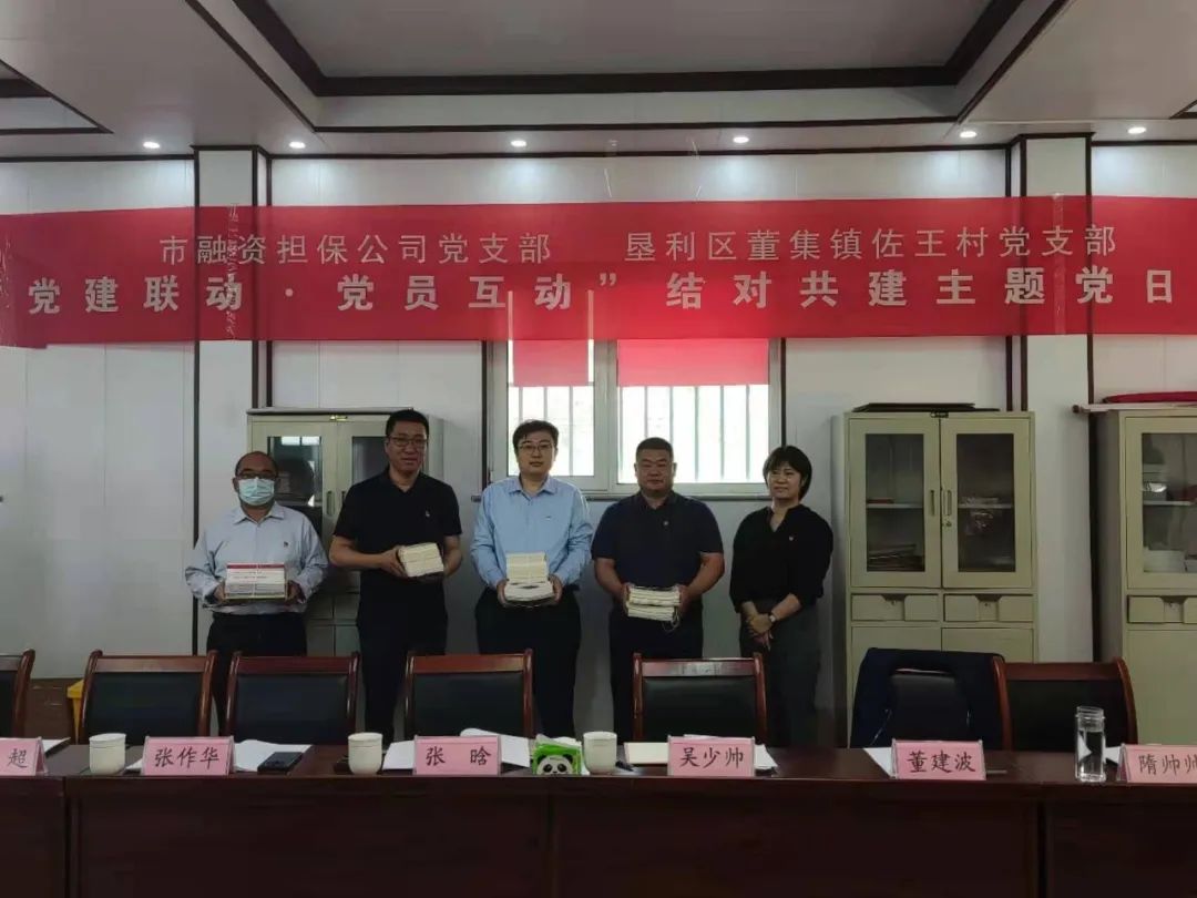 活动中,董集镇佐王村党支部书记和市融资担保公司党支部书记分别介绍了党建工作有关情况,共同签订了党支部结对共建协议书。随后,市融资担保公司党支部向佐王村党支部捐赠书籍刊物,同时安排党员为大家宣讲金融信贷政策和防范金融诈骗等知识。双方党员干部代表还围绕群众关心的融资担保、小额贷款、村集体产权制度改革等方面的热点问题开展座谈交流,为下一步深入合作奠定了坚实基础。