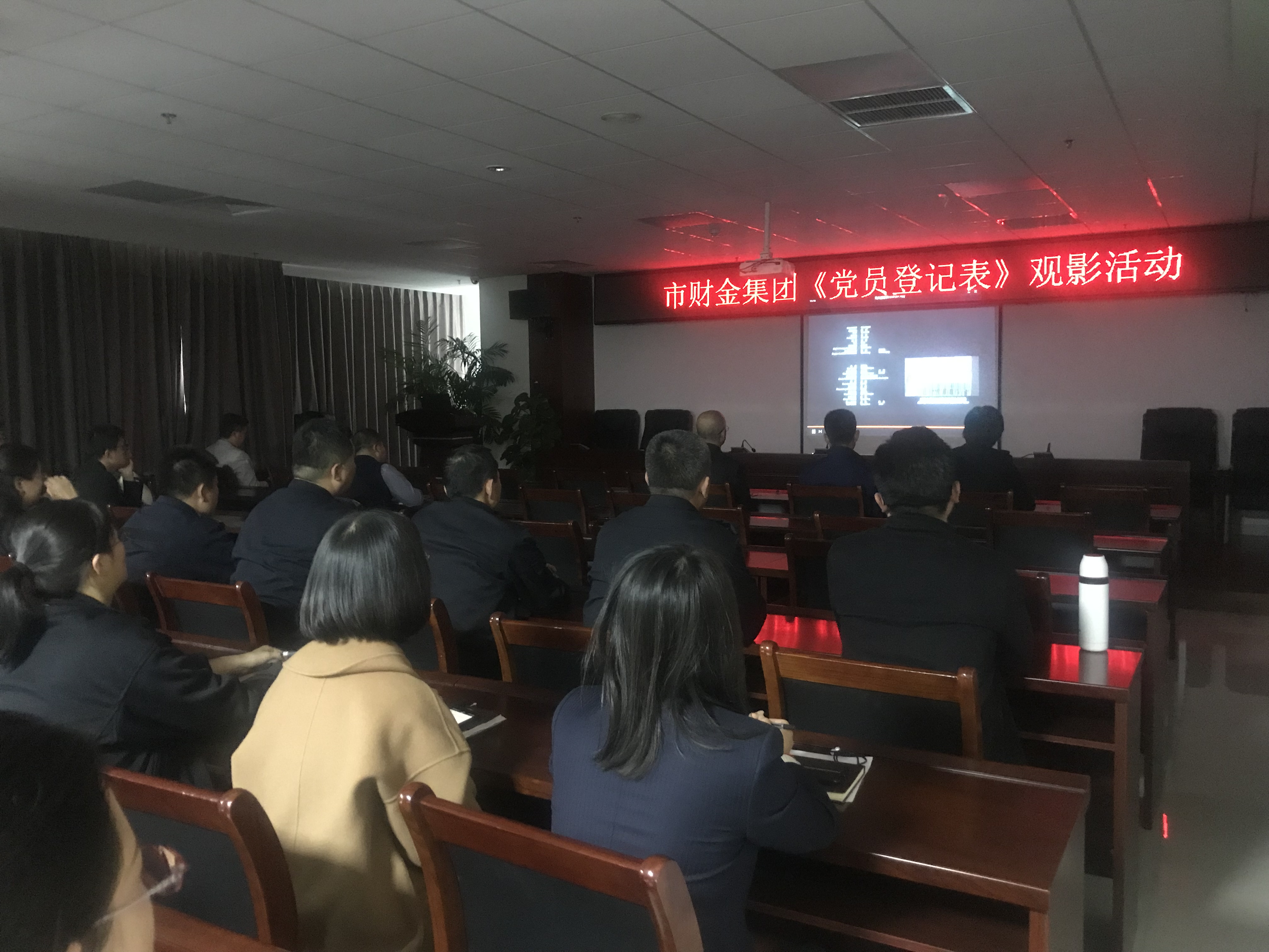 为深入学习贯彻党的十九大精神,积极推进“两学一做”学习教育活动常态化制度化,更好地引导干部员工增强党性修养,坚定理想信念,11月7日下午,市财金集团党委、工会组织全体员工观看红色主旋律电影《党员登记表》。