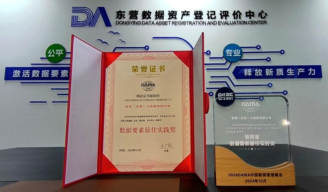 近日,由市财金集团全资子公司智慧(东营)大数据有限公司主导的“城市公共数据‘三化’新业态”项目,荣获“2024DAMA中国数据管理峰会”颁发的“数据要素最佳实践奖”。