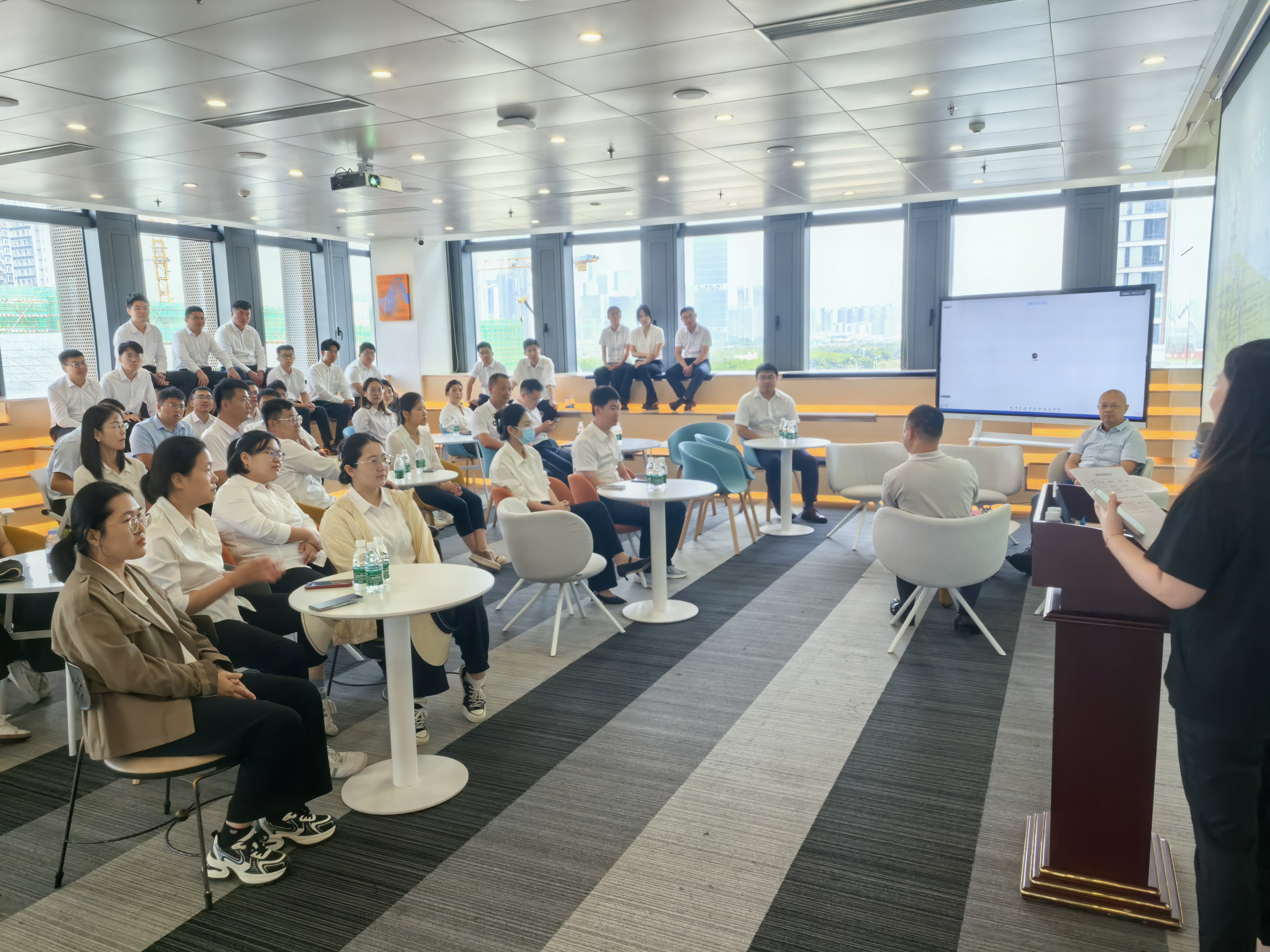 培训班系列课程完成后,11月8日下午,集团举办了专题培训班分享交流会,旨在让年轻干部们走上讲台、展示风采,分享体悟实训收获,检验实践锻炼成果。会上,培训班党支部书记作班级总结发言,4个参训小组及5名参训学员代表依次走上发言席,他们紧密围绕自身岗位实际,以生动详实的方式分享各自精心钻研的课题研究成果,畅谈在体悟实训期间的所见所闻、所思所悟、所学所想。在发言中,他们结合集团的实际情况,深入剖析“深圳经验”的核心价值,精准提炼其中的成功要素,洞察其背后的深层逻辑,提出了一系列创新思路、务实举措和落地方案,展现了前瞻性的战略眼光,探索出了扎实的实践路径。