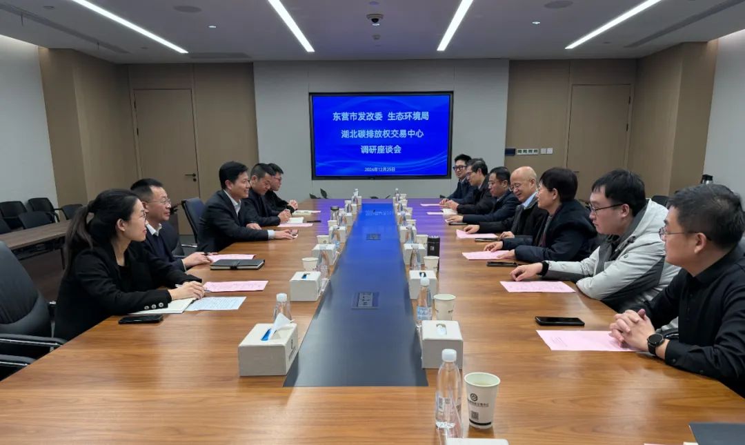 12月25日,胥学忠一行先后到中国碳排放权注册登记有限公司、湖北碳排放权交易中心实地调研,围绕绿色金融、碳资产管理、碳市场机制创新等方面,与中心有关负责同志开展座谈交流。座谈会上,胥学忠指出,自今年8月份双方携手创立东营财金碳产业投资发展有限公司以来,在人才交流、技术引进、项目招引等方面均取得了阶段性成果,为落实国家双碳战略、驱动区域经济绿色高质量发展注入了澎湃动力。下一步将持续拓展合作的广度与深度,全方位挖掘更多契合点,力求在碳领域为社会经济发展创造更大价值,为实现碳达峰、碳中和目标持续赋能。