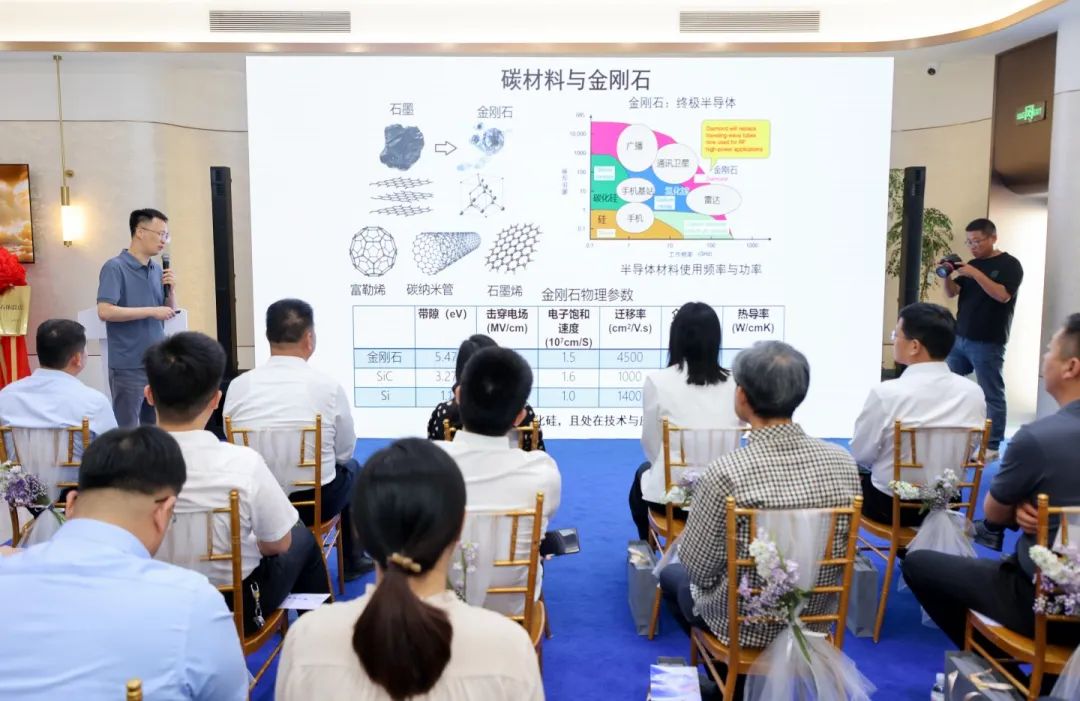 发布会上,与会嘉宾共同为彩色钻石体验店揭牌,中国科学院福建物质结构研究所研究员作科普知识宣讲。