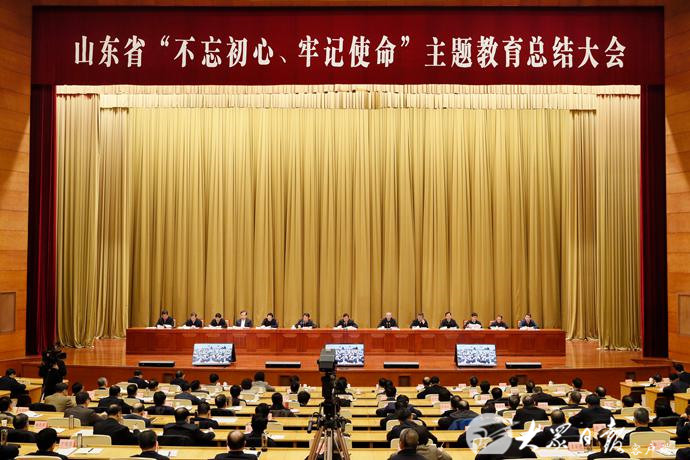 1月11日上午,山东省“不忘初心、牢记使命”主题教育总结大会在济南召开。会议深入学习贯彻习近平总书记关于主题教育的重要论述,学习贯彻中央主题教育总结大会精神,回顾总结全省主题教育开展情况,对标中央要求找差距,对巩固和深化主题教育成果进行安排部署。